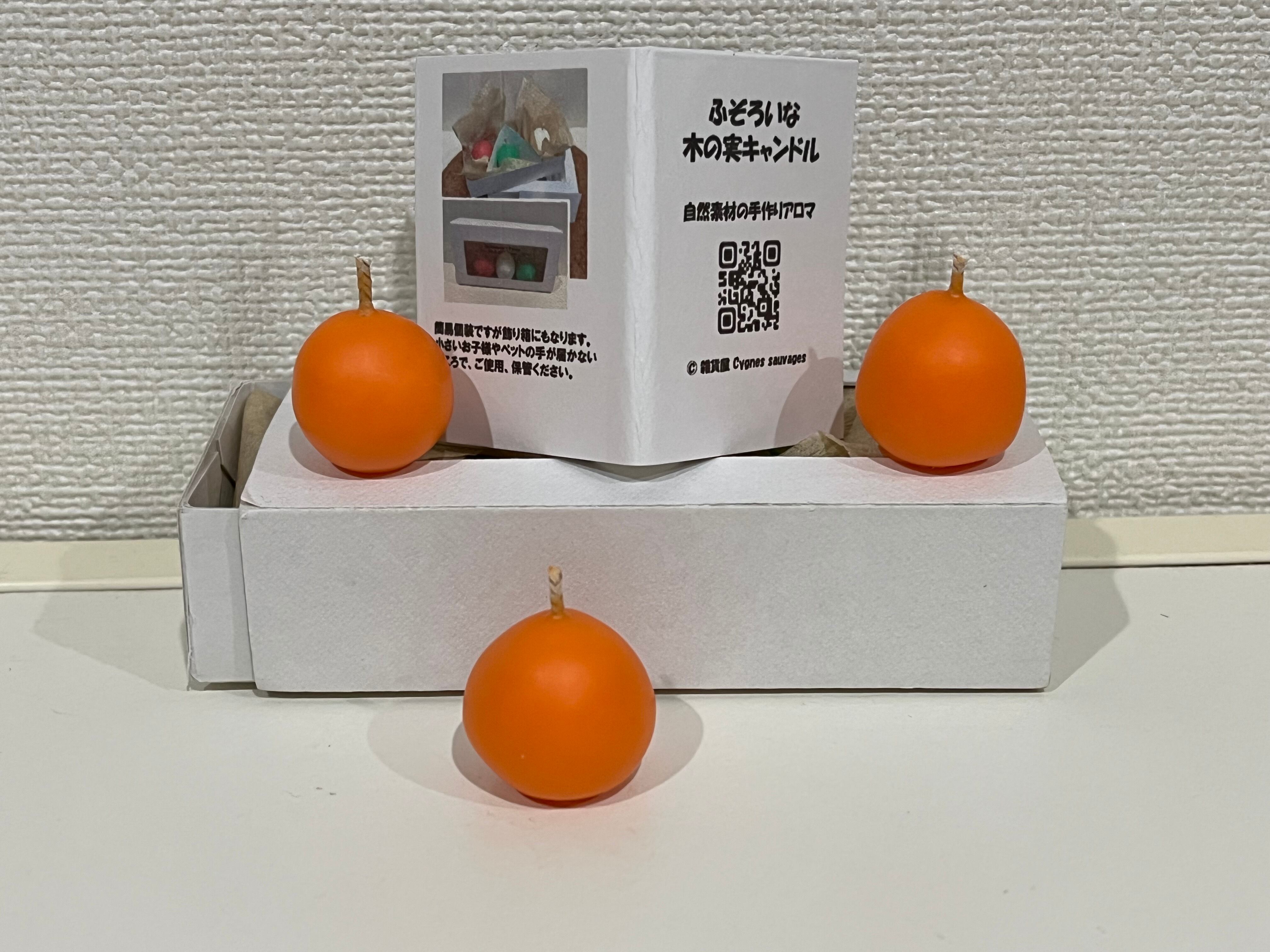 ふぞろいな木の実キャンドル パステルオレンジ シトラスの香り 蜜蝋とソイ素材アロマ 3個セット
