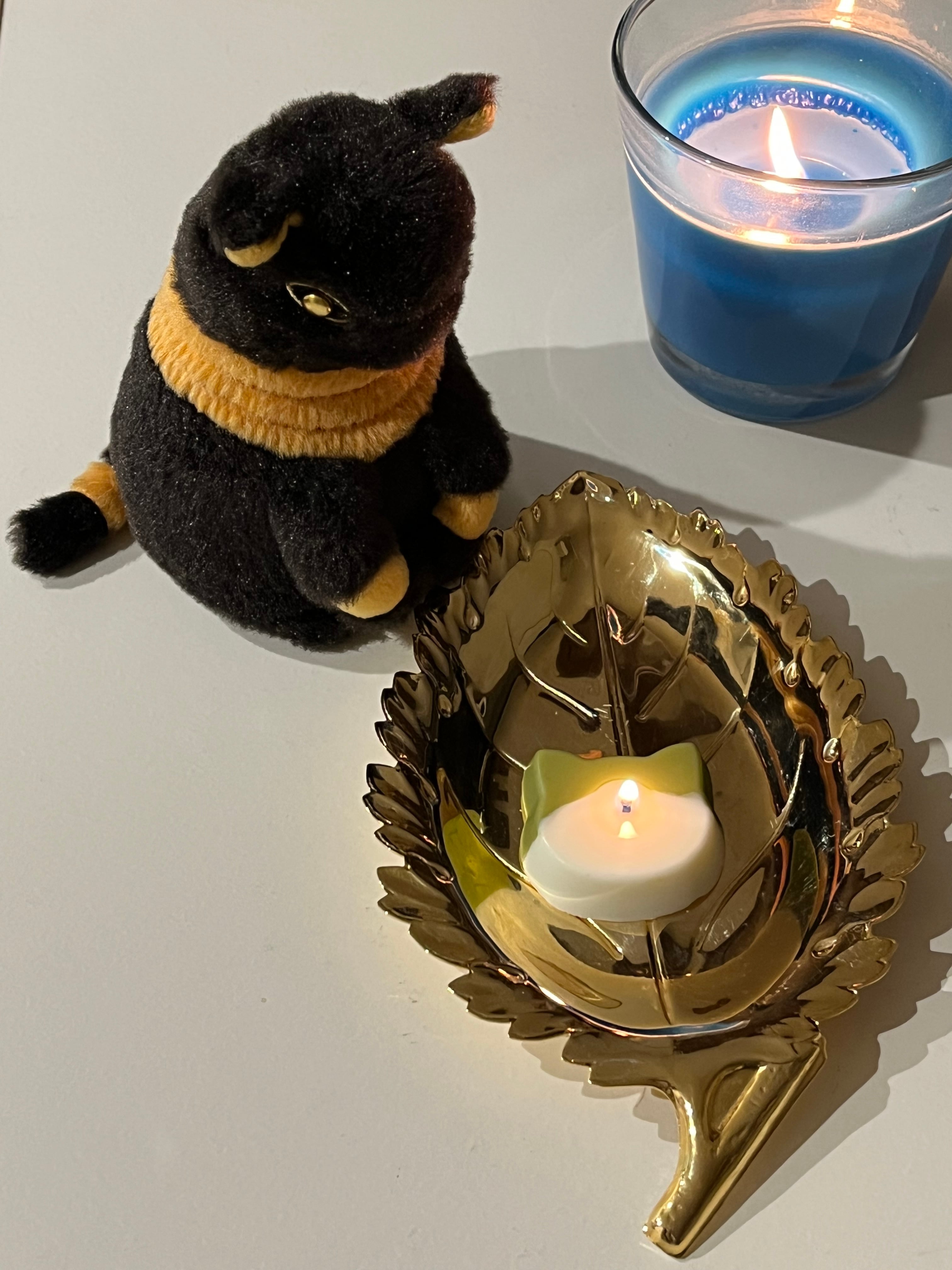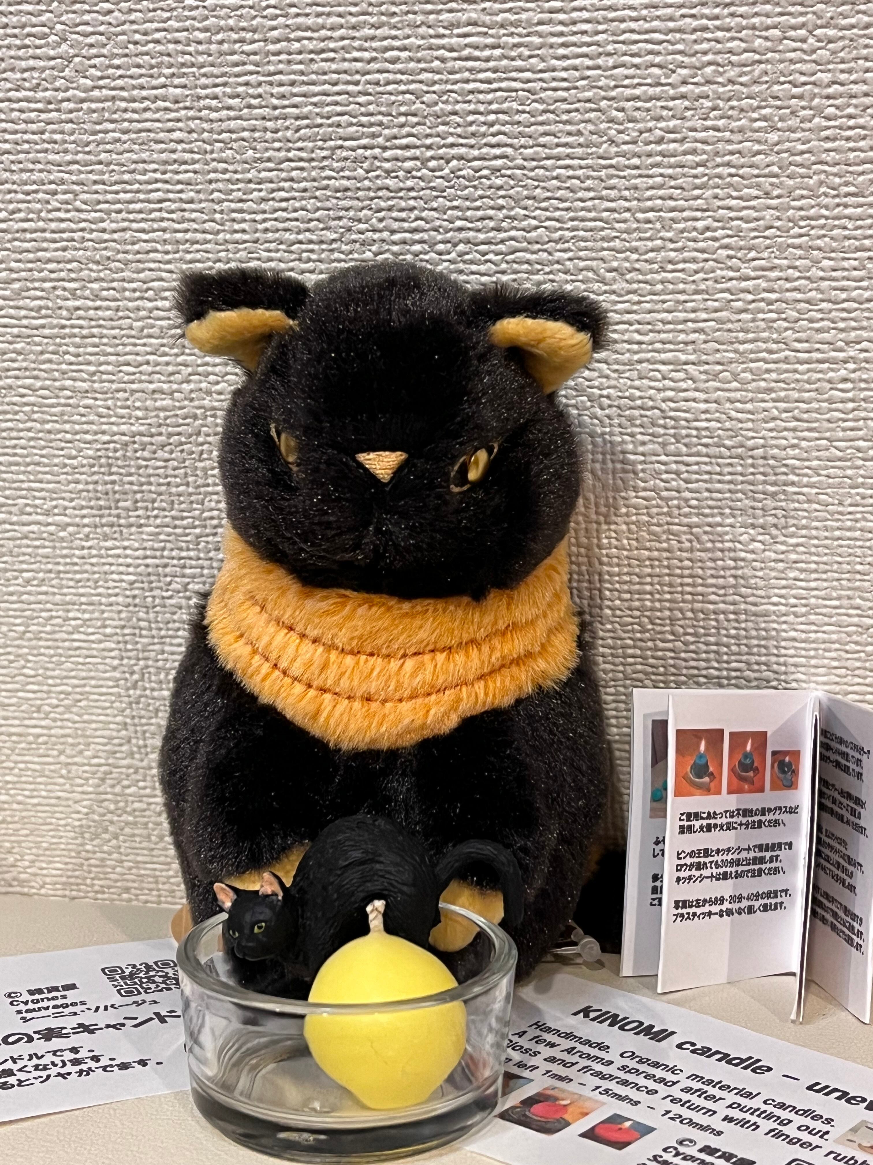 送料込み エジプトパッケージ 手のひらサイズぬいぐるみ バステト & キャンドル & 小皿(グラス) & 黒猫フィギア 各一個