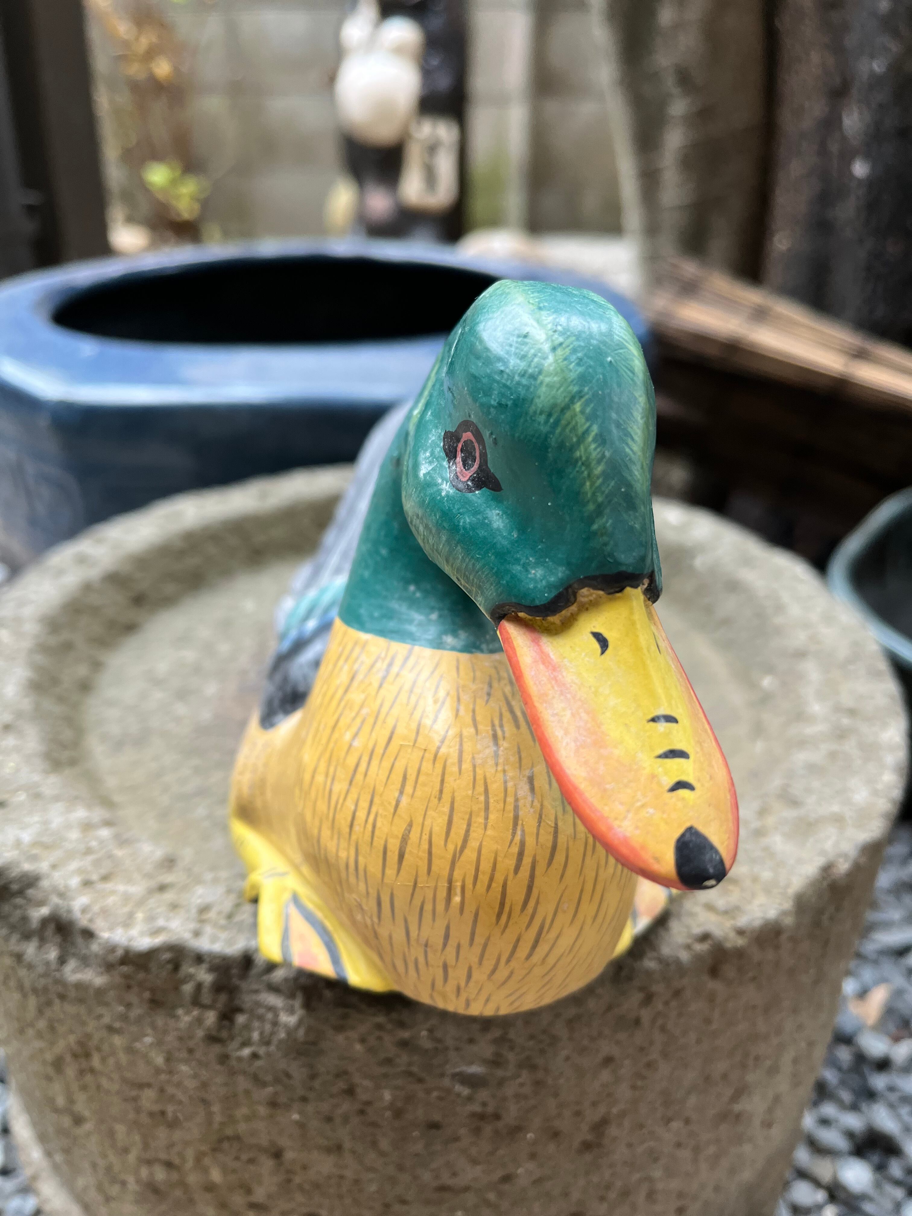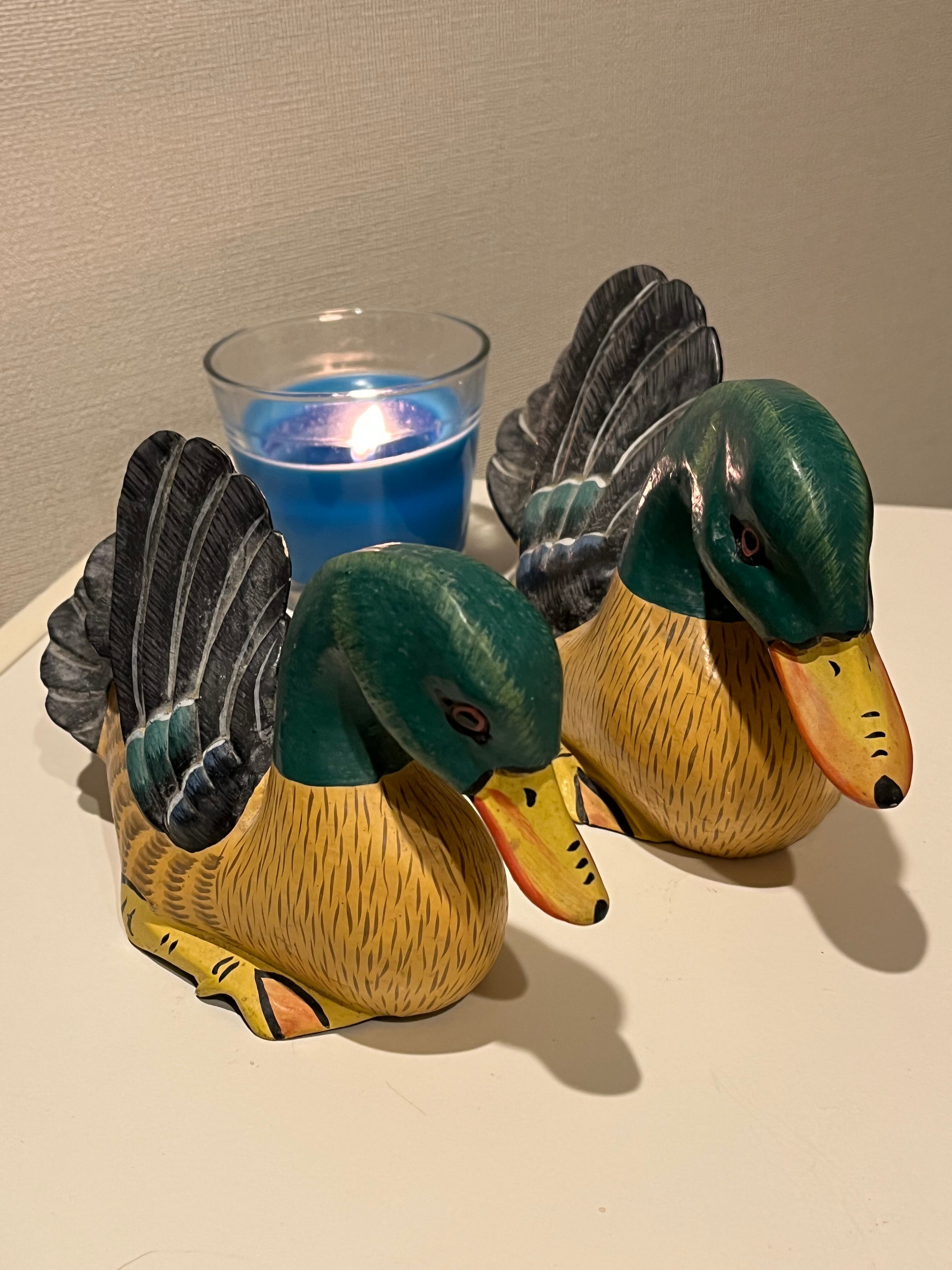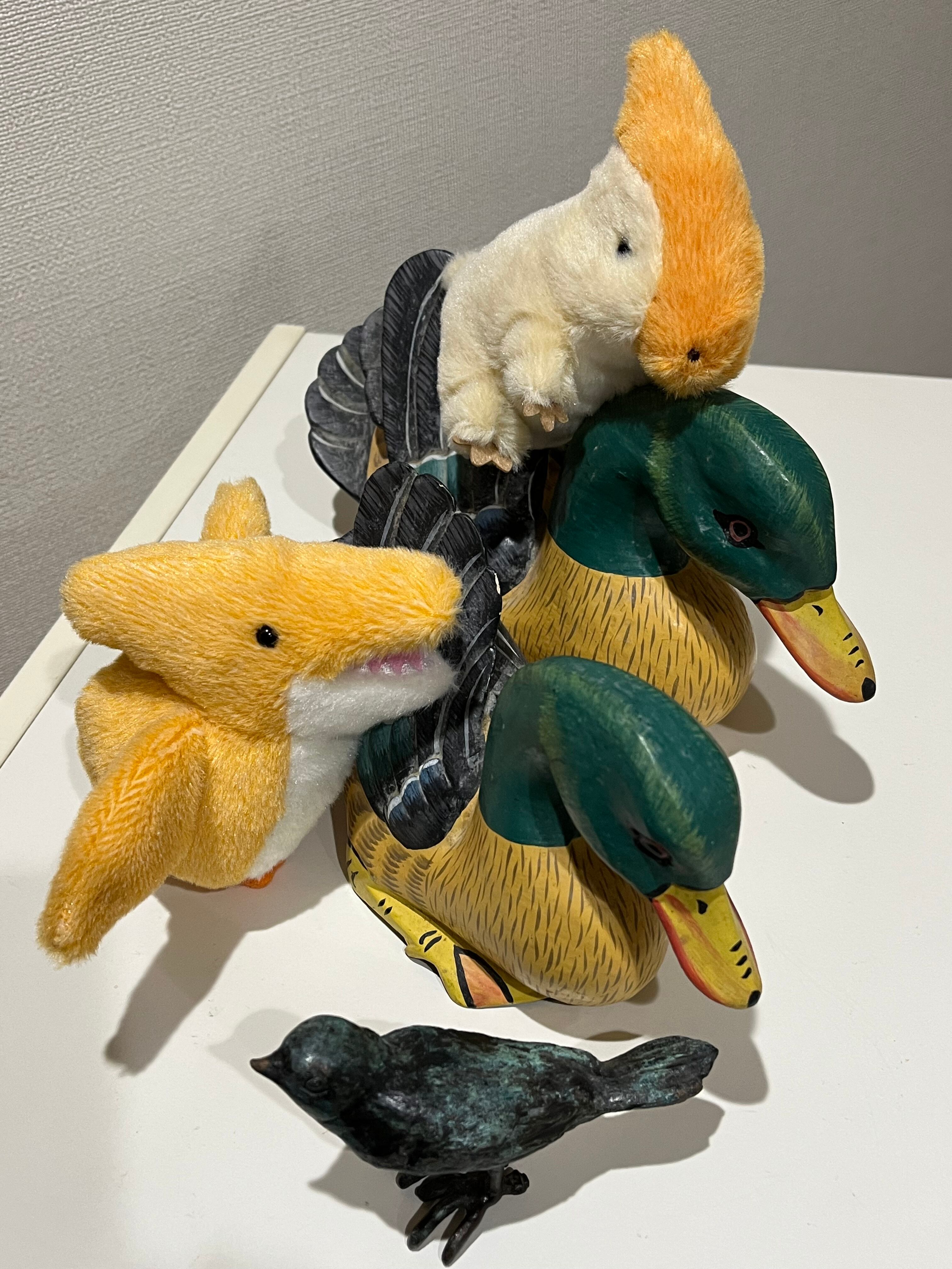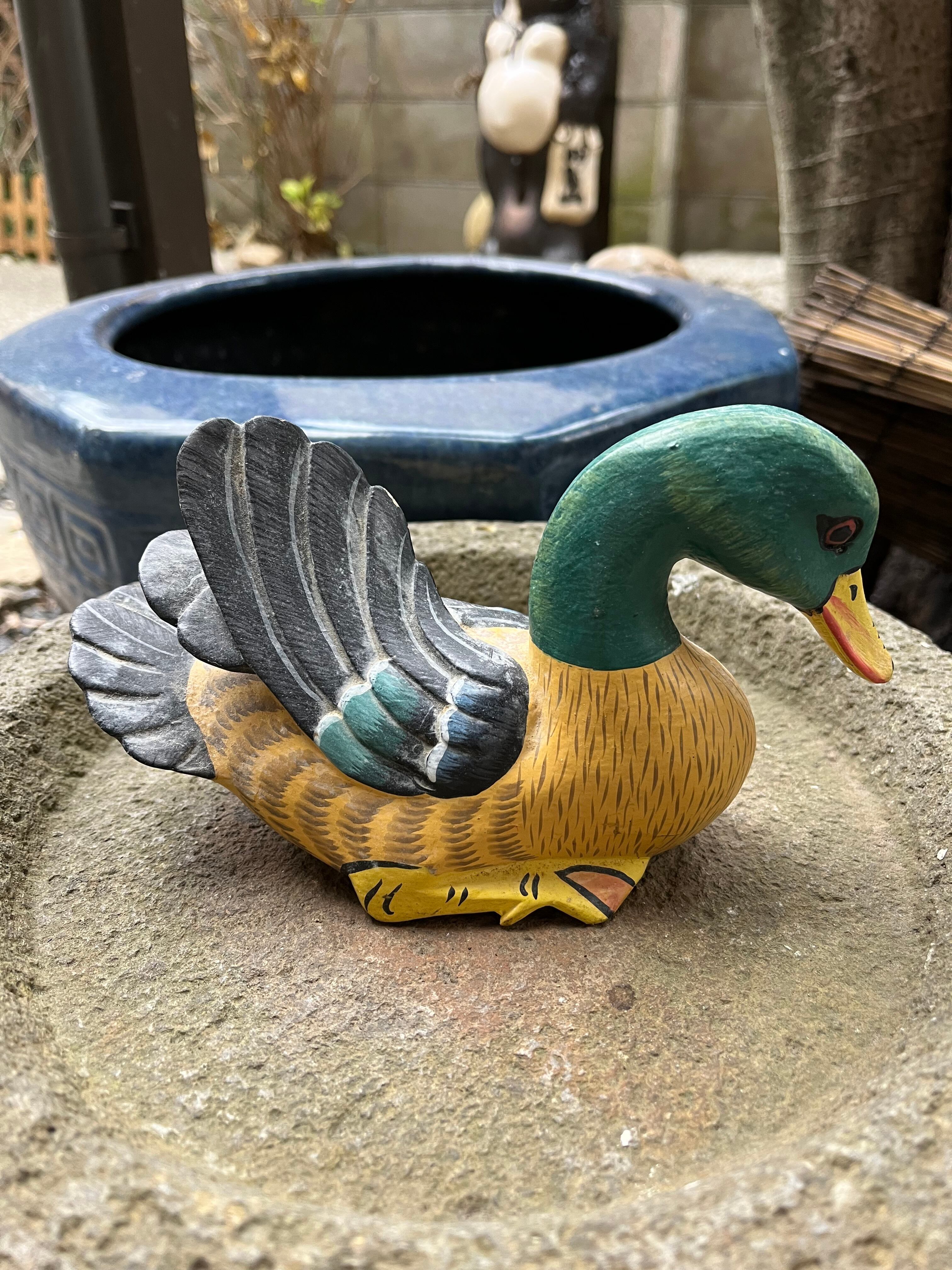 木彫りの親子カモ 送料込み