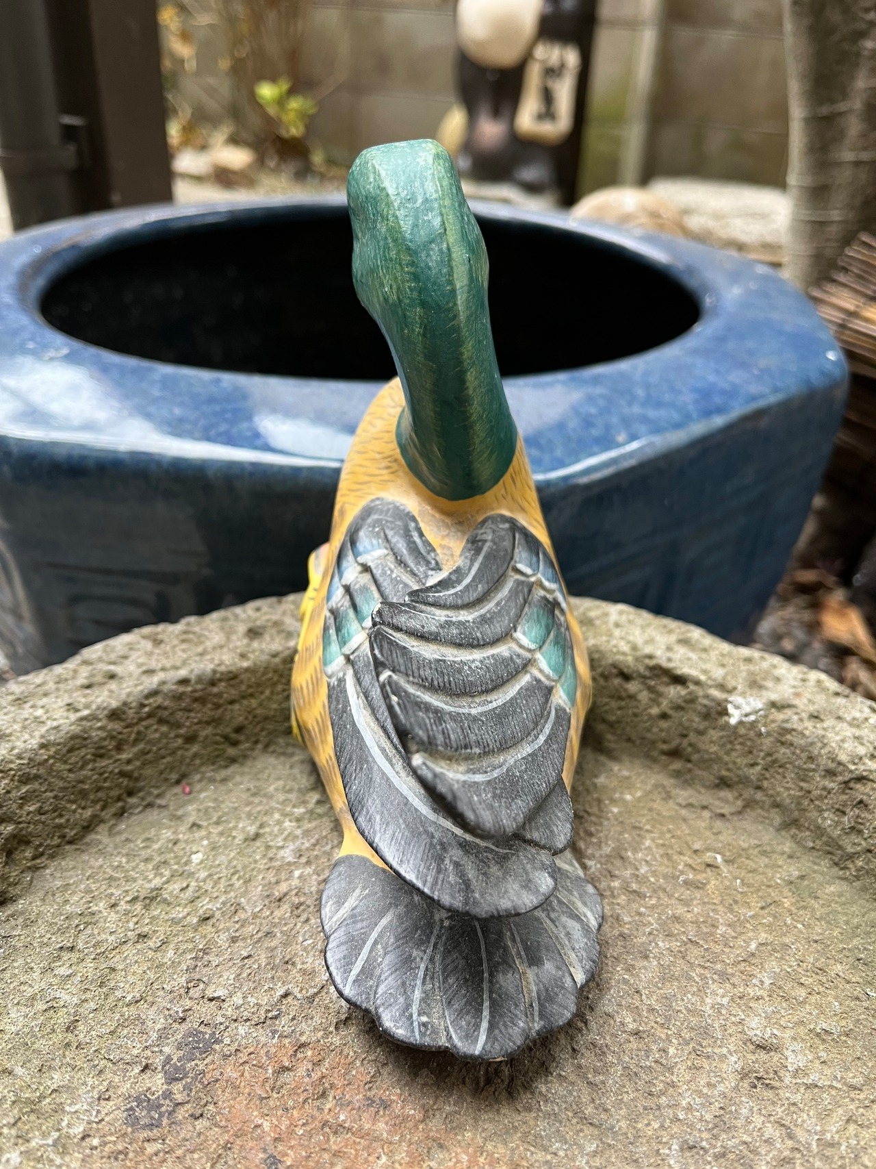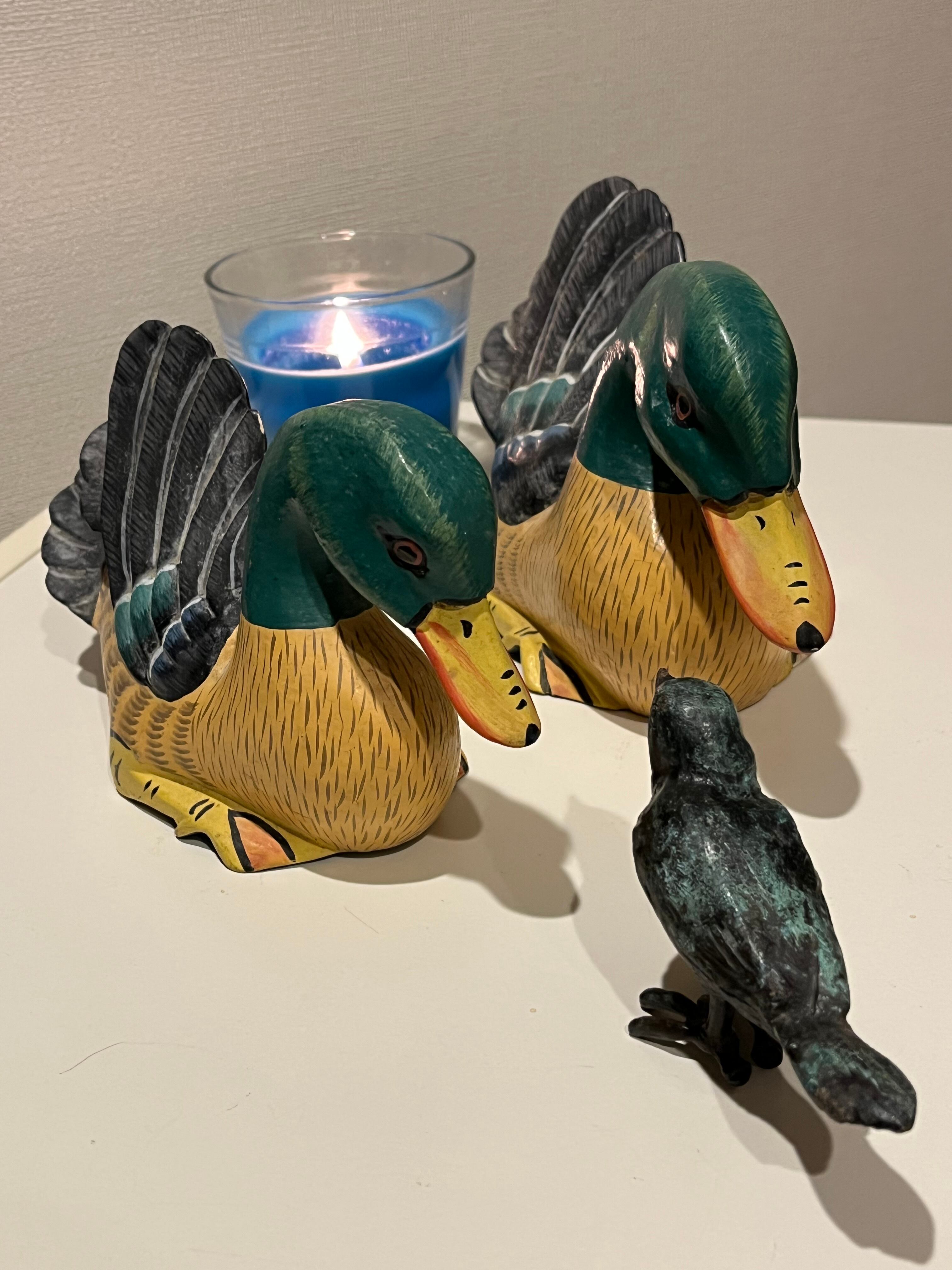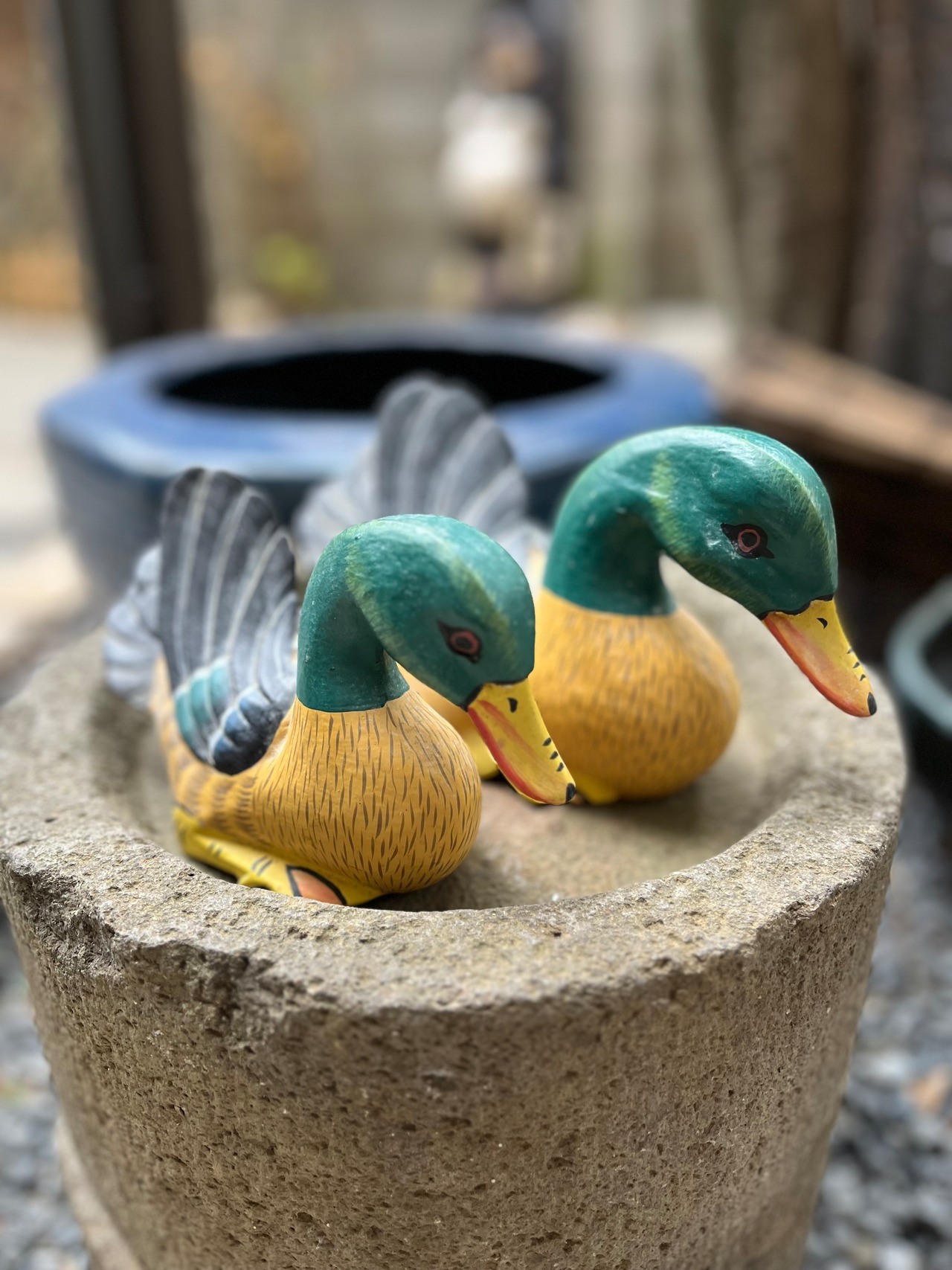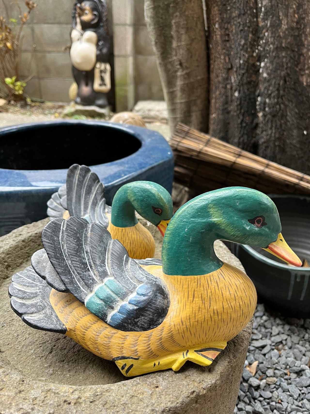 木彫りの親子カモ 送料込み